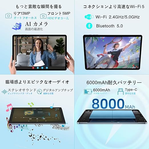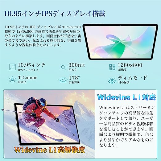 【最新 android 15 タブレット 11 インチ Wi-Fi モデル+高性能 8 コア CPU+12GB RAM + 128GB ROM + 1TB 拡張タブレット】bmax I11S タブレット androidは、最新のオペレーティングシステム Android 15を搭載し、8 コア T606 CPUを採用しています。より速い処理速度を提供し、複数のアプリケーションを同時に実行しても遅延やカクツキが発生しません。また、4GB+8GB の仮想メモリ RAM と 128GB の ROMを搭載