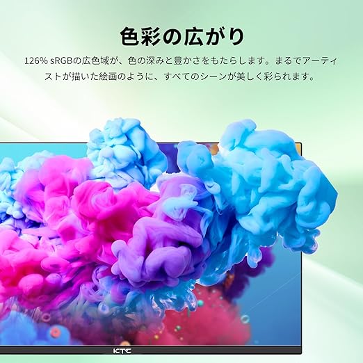【フルHD IPSパネル】1080Pの高解像度と広視野角で、どんな角度からでも鮮やかな色彩を楽しめます。リアルな色合いで、画像や動画の細部までしっかり再現。仕事もエンターテインメントもこれ