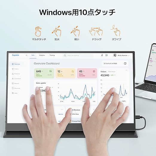 【15.6" FHD 1080P・マルチタッチ】 臨場感がある15.6インチ大画面を搭載するタブレットモニターは、画面解像度はフル HD(1920×1080)で、在宅勤務やゲーム、動画視聴に最適!178°視野角により上下左右からportable monitorの内容が得られる自然な色合いを表示できるIPS液晶パネルを採用、より広い範囲で見ても鮮やかな映像をみることが可能。マルチタッチ機能により多いジェスチャーで複雑なスクリーンに簡単にコントロールできると、ワーク効率を大幅に向上してマウスとキーボ