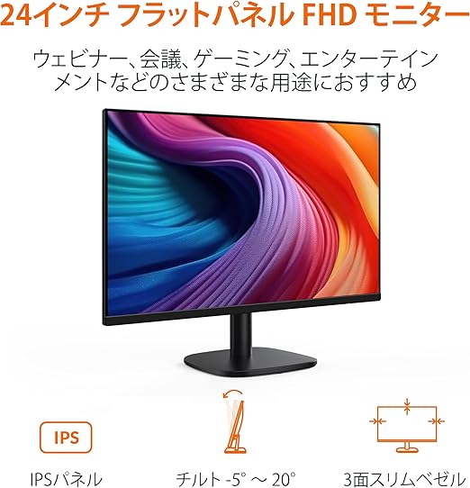 オフィスやエンターテイメント用の24インチIPSデジタルモニター。