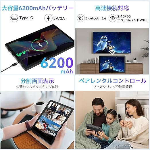 タブレット - HiGrace 10インチ タブレット Android15 30GB+128GB+1TB拡張 8コアCPU アンドロイド wi-fiモデル PCモード BT5.4 WIFI6 6200mAh大容量 1280*800 IPS画面 GMS認証 Widevine L1対応 無線投影 画面分割 児童守護 Type-C充電/イヤホンジャック 日本語説明書 a | PCBASE