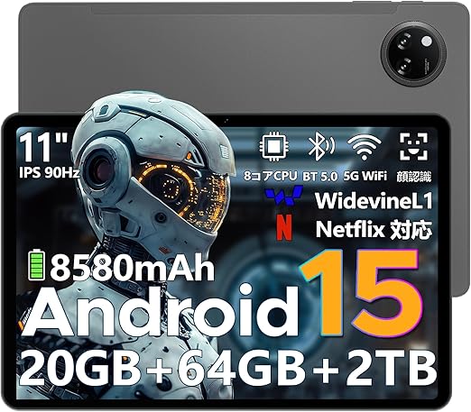 【タブレット 11インチ Wi-Fiモデル】DOOGEE A9+ Android 15 タブレット、20GB+64GB+2TB拡張、8コア CPU T7200、1280*800 解像度 IPS画面、8580mAh+Widevine L1対応+Netflix対応+GMS認証+Type-C充電+OTG+2.4G/5G WiFi+BT5.0+無線投影+顔認証+画面分割 日本語説明書付属 フルメタルボディ a | PCBASE