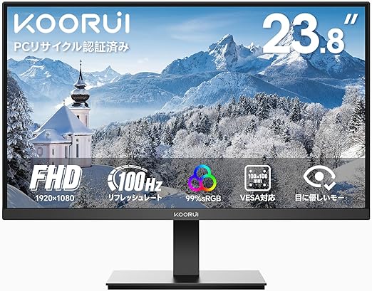 KOORUI モニター 24インチ VA 非光沢 フルHD pcモニター 5ms 100Hz ディスプレイ HDMI VGA 傾き調整 広い視野角 スピーカー非搭載 E2412F a | PCBASE