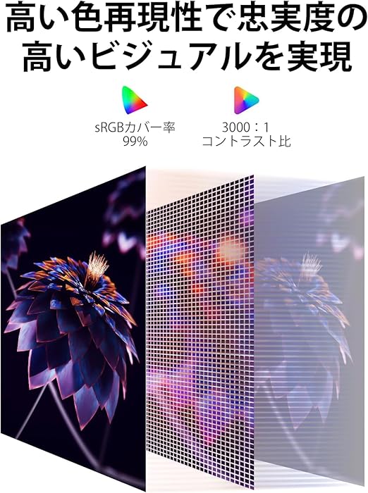[3000:1超高コントラスト比]コントラスト比が高いほど、映像を鮮明に映し出すことができる。KOORUI 24N1Aデ