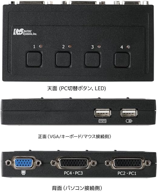 複数パソコンを省スペース化!定番のVGAパソコン切替器(4台用)