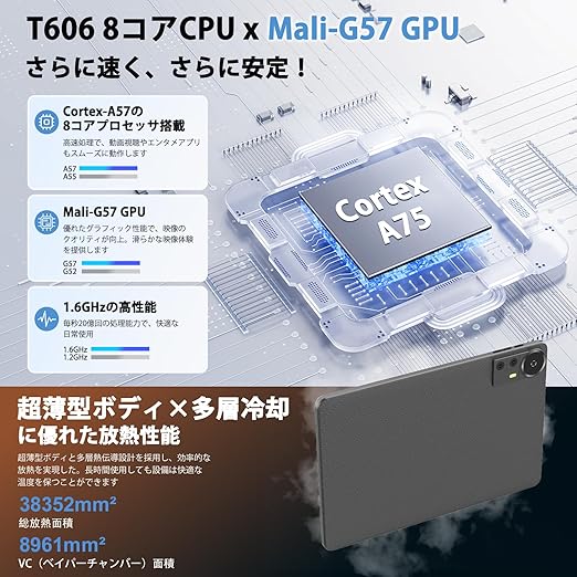 【Android 15 タブレット+高性能8コアCPU+WI-FIモデル】 最先端OSであるアンドロイド15を搭載したCUPEISI CP31の2025最新版10.1インチタブレットは、カスタマイズ、プライバシー保護、ユーザー補助機能などをさらなるシステム強化と新機能の追加でより安全で快適なタプレットになりました。周波数1.6GHzの8コアプロセッサー「UNISOC T606」を搭載している。高速でスムーズにマルチタスクを処理します。同じタスクの環境下で、T606プロセッサーの実行速度はA523