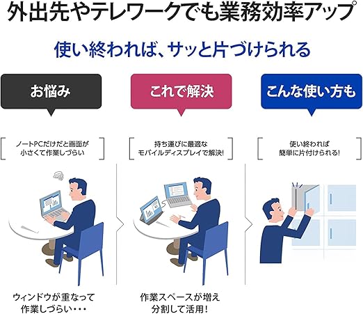 【超軽量・超薄型デザイン】 本体重量わずか 650g(文庫本 2 冊相当)、最薄部 4mm!スマホよりも薄く、鞄に簡単収納可能。折りたたみ式マグネットカバー付属で本体保護とスタンド機能を兼ね備え、底部滑り止めゴムで安定設置を実現。外出先でも持ち運び・使用がストレスフリー!