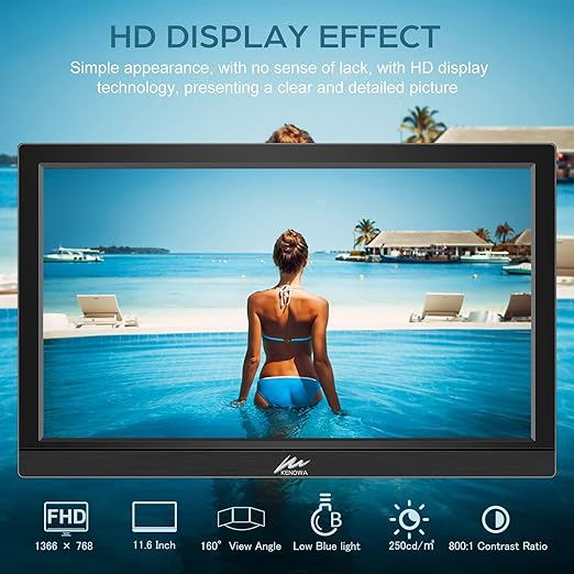 モバイルモニター 11.6インチ:優れた表示機能 : 解像度:1366*768 ,250cd / m2(標準)輝度、16:9(4:3)アスペクト比、800:1コントラスト比、TN(160°視角)。