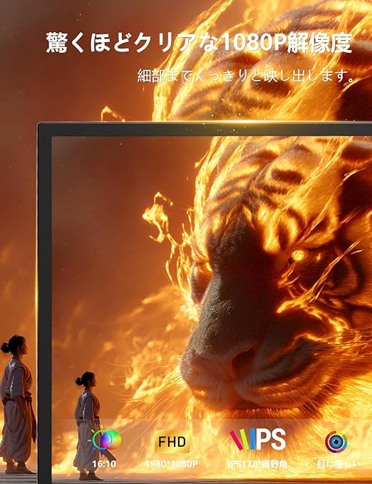 【高解像度10.5インチIPSディスプレイ】1920×1080フルHD解像度とIPSパネルにより、細部まで鮮明で自然な色再現が可能。広視野角178度とsRGB 100%カバーで、プロフェッショナルな映像作業にも対応。