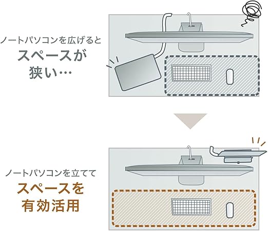 垂直にノートパソコンを設置することで、作業スペースやデスクスペースを節約できます。