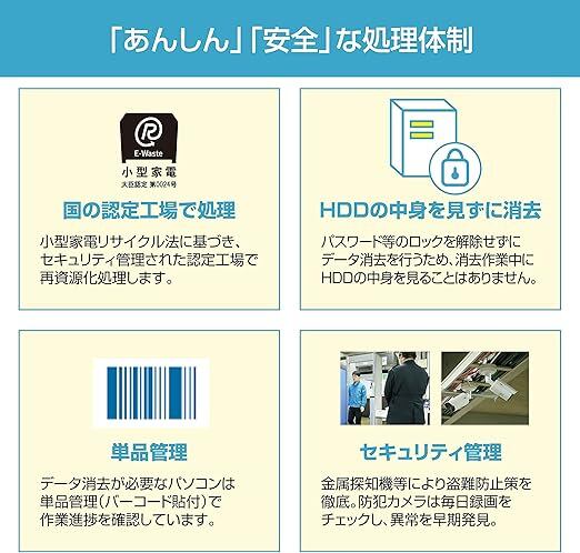 本製品には宅配便回収費用・パソコン/スマホ1台分のデータ消去費用・証明書発行/郵送費・リサイクル費用が含まれます。(段ボールサイ