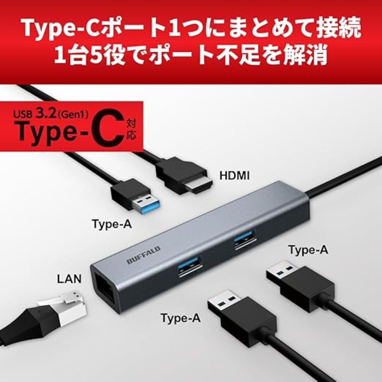 バッファロー USB Type-C 接続 5-in-1 ドッキングステーション 有線LAN HDMI USB3.2(Gen 1)対応 Type-A 3ポート シルバー LUD-U3-CU301SV/N a