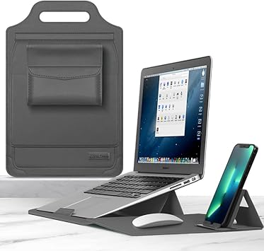 XIHAMA ノートパソコンケース 12 / 13 / 15.6インチ 多機種対応 スリーブケース 折り畳み式 スタンド機能 収納ポーチ付き 軽量 薄型 傷防止 耐衝撃 手提げ 多機能PCバッグ タブレットケース (Grey, 13.3 inch-14 inch) a | PCBASE