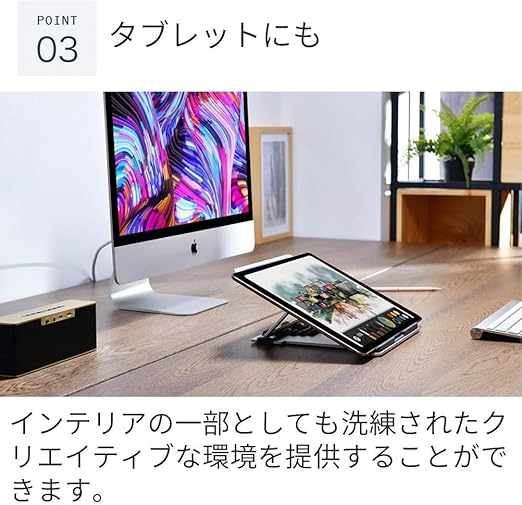 [ デザイン ] MacbookもWindows PCも11~15.6インチのノートPCに幅広く対応。アルミニウム素材のスタンドはシンプルでどんなカラーにもぴったり