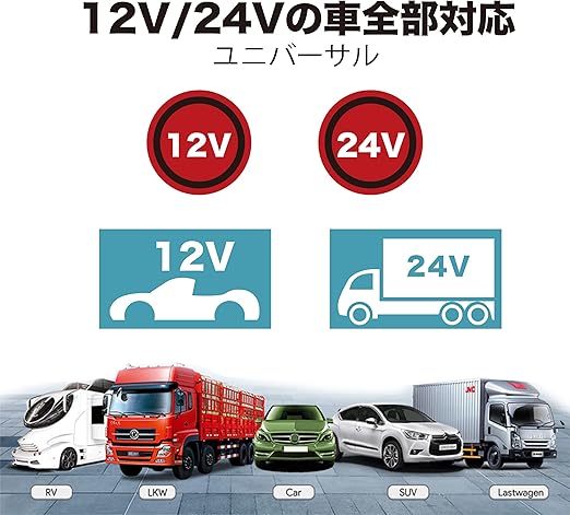 【12V/24V車対応 】12V/24Vの車全部対応できます。道の状況に関係なく、デバイスに安定した電源を供給することができます。