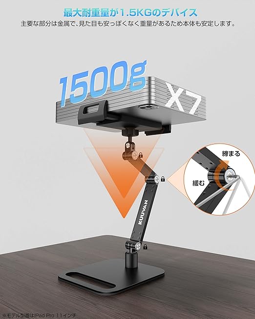 KUUVAN タブレット スタンド 卓上 iPad アーム アルミ製 4.7-17.3インチ対応 耐荷重1.5キロ 金属ジョイント スマホ俯瞰撮影 角度無段階 スマホ/タブレット/15.6,17.3モバイルモニタ対応 ブラック a | PCBASE