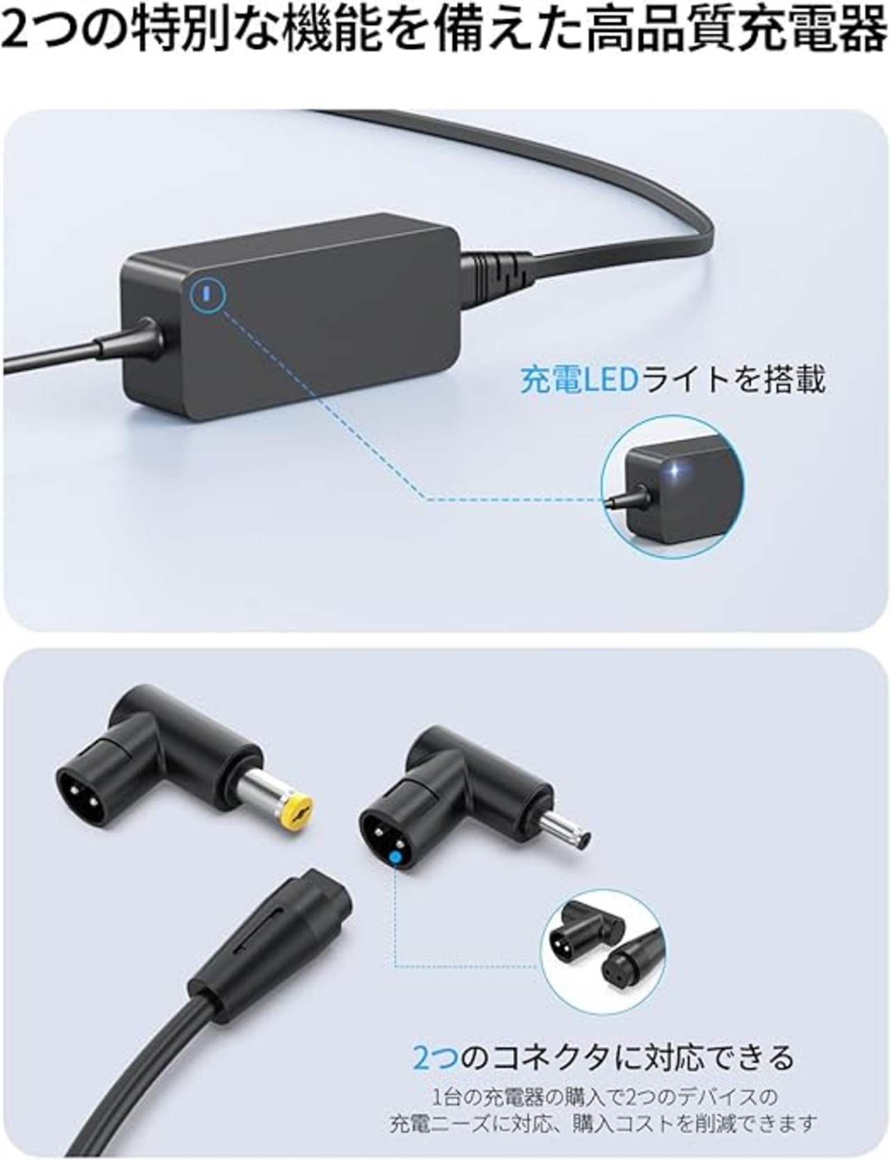 19V 3.42A 65W Acer用 ACアダプター 対応Aspire, Spin, Swift, TravelMate, Chromebook用 シリーズ ノートパソコン 2種類のDCジャック コネクタ変更可能 エイサー交換用充電器 3M PSE認証 PC電源アダプター 充電状態ランプ a