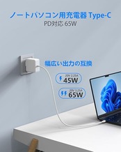 【ノートパソコン 電源アダプター type-cの商品規格】本製品はPD/PPSに対応し、USB Type-Cコネクタを搭載したノートパソコン互換用65W/45W Type-C ACアダプターです。この65W Type-C ノートパソコン充電器の入力:100-240V 50-60Hz 1.5A; 出力65W: 5V 3A, 9V 3A, 12V 3A, 15V 3A, 20V 2.25A, 20V 3.25A, PPS: 3.3-21V/3A。お使い機器を接続するだけ、自動でお使い機器を最適な出力
