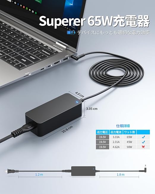 19.5V 3.33A 65 45W HP互換用 Probook ACアダプター 丸型 4.5*3.0mm 充電器 Probook 450-G8 G9 430-G8 G7 G6 G5 G4 3635-aero-G8 445 470 650 などのノートパソコン対応 PSE認証 電源アダプター a | PCBASE