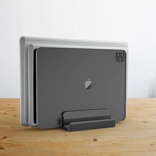 Geecol ノートパソコン スタンド 縦置き 3台収納 ホルダー ユニバーサル PCスタンド 幅調節可能 MacBook/iPad/iphone/フォルダー/本/PC/タブレット等あらゆるノートパソコンに対応します アルミ製 在宅勤務 スペース (黒) a | PCBASE
