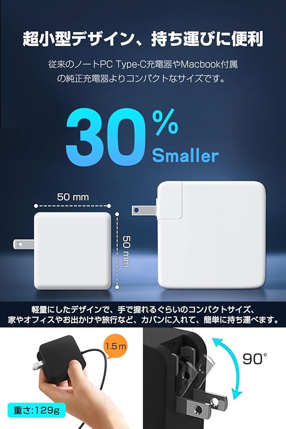 ノートパソコン 充電器 type-c PD 65w Macbook pro/レノボ/Lenovo交換用充電器【GaN+(窒化ガリウム)採用/PD 65w/45w急速/1.5mType-Cケーブル一体型/折畳式プラグ/PSE】acアダプター Mac電源アダプタ 軽量 持ち運び Switch/Mac Book Pro 各種USB-C機器対応 黒 a | PCBASE