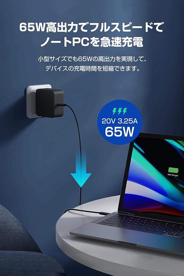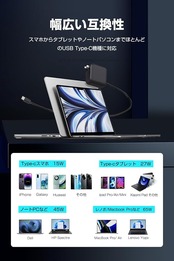 ➤【最大67Wのすばやく充電】Type-C充電器は最大65Wの高出力ですばやくノートパソコンを充電されます。65W超高速充電、充電スピートはMacBook proの充電器とほぼ同じで、MacBook Pro 15.4"を充電する場合、0%から100%までたった2時間でフル充電になります。MacBook Proを含むお使いのノートPC(Mac Book Pro、Samsung、Nexus、Lenovo、ASUS、Acer、DELLなど)やタブレット端末、スマートフォンなどほぼ全てのTYPE-C機器