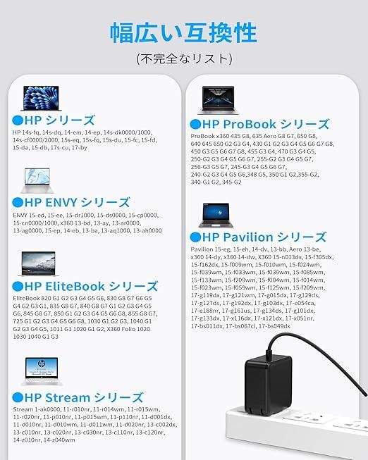 Dalugo HP用 ACアダプター 65W 45W 19.5V 3.33A HP 電源アダプター ノートパソコン 充電器 GaN採用 軽量 小型 折畳式プラグ 4.5*3.0mm丸端子 対応HP EliteBook/ProBook/Pavilion/Envy/Streamシリーズ パソコン 充電器 HP アダプター 互換純正HP 45W 65W スマートACアダプター a | PCBASE