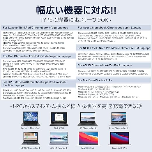 65W Type-C acアダプター 対応 Dynabook 富士通 lenovo レノボ Thinkpad 交換用 USB-C 充電器 ノートPC用ACアダプター Type-C 65W ノートパソコンレノボThinkpad/Chromebook/Ideapad Yoga/ThinkBook/Chromebookなどノートパソコン充電器 Type-C a | PCBASE