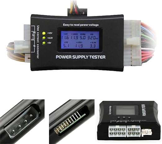パソコン ATX電源 テスタです。 電源テスターは、PC電源用の電圧テスターです。 ATX、BTX、およびITX準拠の電源装置をテストすることができます。 液晶で電圧を示します 電源の20ピンコネクタに接続します + 3.3V、+ 5V、+ VSB、-5V、-12V、+ 12V サイズ:約9.7x6.2x2cm