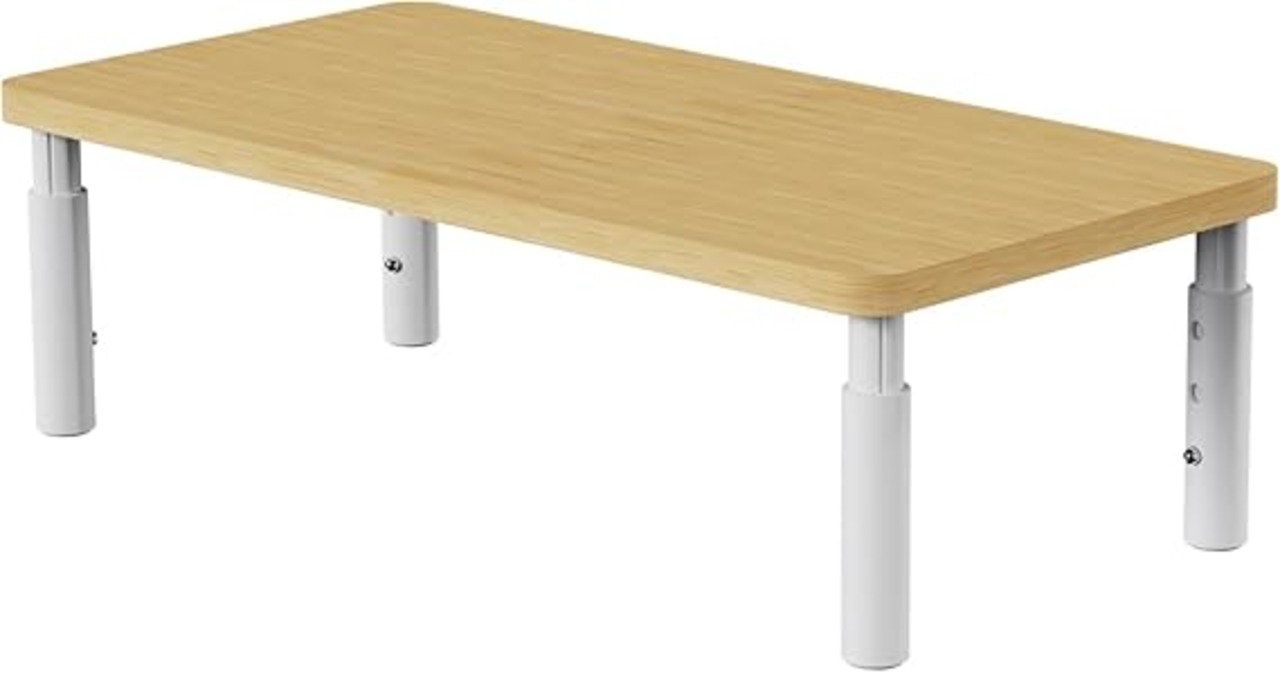 【姿勢改善】足のボタンを押して、モニタースタンドはЗ段階(10-12-14cm)の高さ調整ができます。パソコン台を利用すると、モニターとパソコンの高度を高め、首や背筋が伸びるようになります。姿勢がもっと良い、猫背を防ぎ、もっと健康の生活を楽しみます
