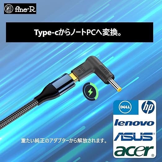 fine-R USB-C 入力 DC 4.0×1.7mm 出力 ノートパソコン用 変換アダプター PD充電対応 高速充電プラグ 19.5V 5A 主に HP ASUS Lenovo対応 タイプC 電源変換 USB-Cアダプタ(PL保険加入品) (03-4017) a