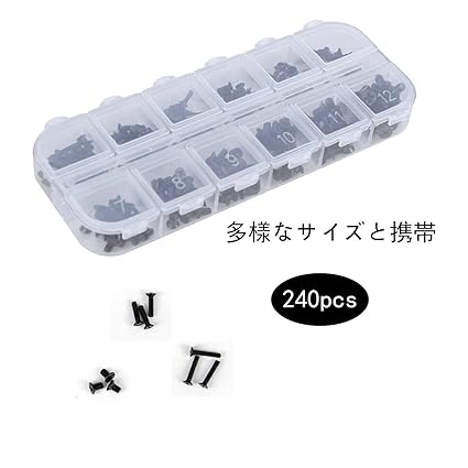 3.多様なサイズと携帯:12種類の規格(M 2/M 2.5/M 3)を含み、240個のねじを含む。コンパクトで持ち運びしやすく、さまざまなメンテナンスシーンに適しています。