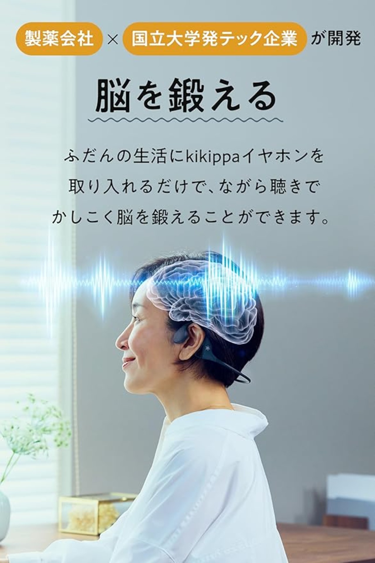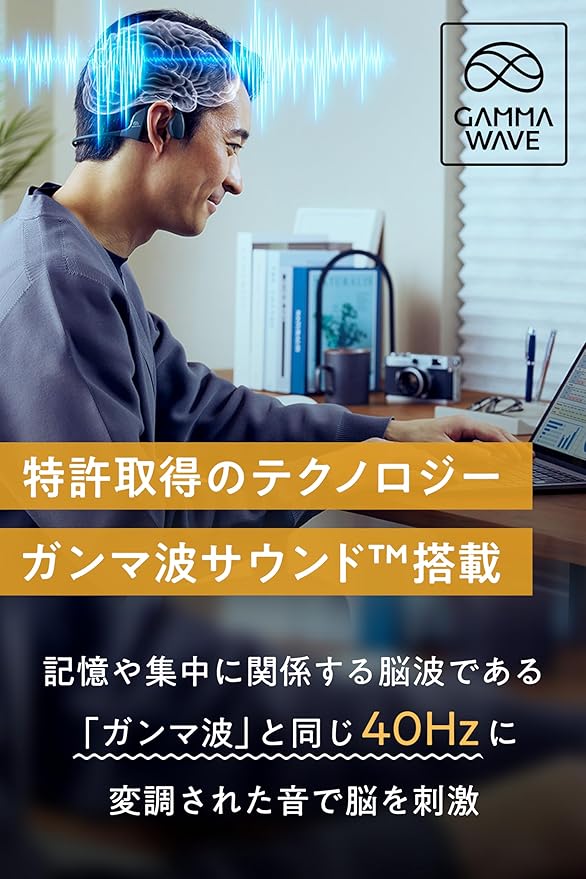 【ながら聴きで、かしこく脳を鍛える毎日を】「kikippaイヤホン」は、製薬会社と国立大学発のテック企業が開発し世界初(※1)のテクノロジー、「ガンマ波サウンド」を搭載したワイヤレスイヤホンです。bluetooth対応のオープンイヤー スタイルの耳を塞がないイヤホンだから、イヤホンを着けたままでも周囲の音や会話を自然にキャッチ。ながら聴きで、かしこく脳を鍛えることを習慣化できます。 また、ガンマ波サウンドモードをOFFにすることで、国内オーディオメーカー出身の技術者がチューニングした臨場感あふれ