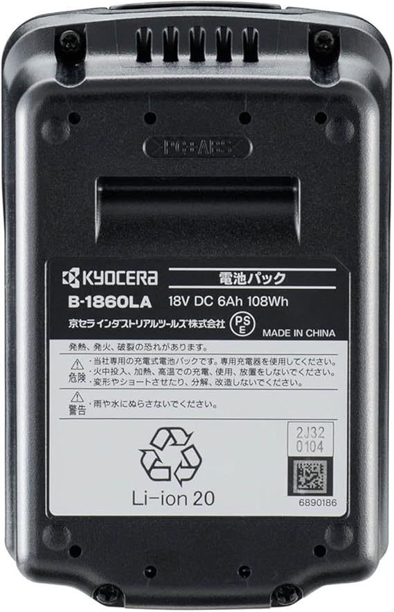 京セラ(Kyocera) 旧リョービ リチウムイオン電池パック 18V 6000mAh B-1860LA 64000721 ブラック【18V充電工具用】 電池容量:6000mAh(6Ah) a | PCBASE