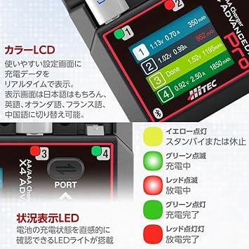 ハイテック AA/AAA Charger X4 アドバンスEX PRO 44360 充電器 単3 単4 単三 単四 電池 バッテリー 急速充電 放電器 リフレッシュ アナライズ 高性能 PD対応 簡単操作 レース用 日本正規品 a | PCBASE