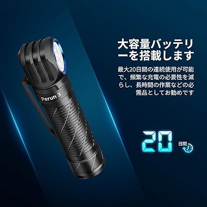 [両手解放デザイン・幅広く活躍]:Perun 3はヘッドライトとしての使用はもちろん、クリップ付きでポケットや服にも掛けられ、持ち運びに便利です。また、磁気デザインにより鉄や金属に吸着でき、ハンズフリーに作業できます。夜釣り、キャンプ、登山、防災、停電、緊急時など幅広く活躍します