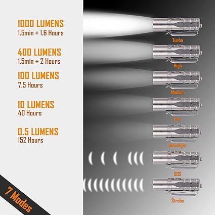 RovyVon Aurora A24 G2 チタン LED 懐中電灯、1000 ルーメンのロックアウト モード付きポケット懐中電灯、充電式 EDC 懐中電灯、7 つのモード、毎日の持ち運び、ハイキング、キャンプ用防水 a | PCBASE