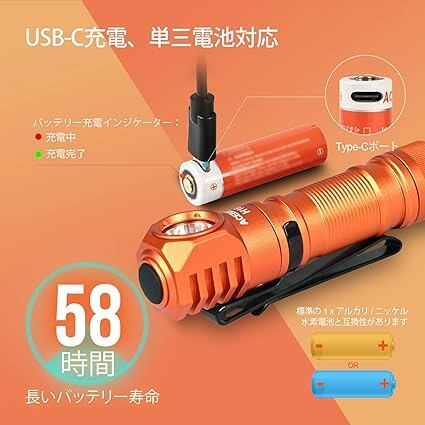 ACEBEAM H16 LED ヘッドライト 懐中電灯兼用 高演色 CRI90 5000K 昼光色 650ルーメン 高輝度 超軽量 単三電池対応 小型 フラッシュライト USB-C充電式 ヘッドランプ 180°調整可能 IP68防水防塵 6つの点灯モード SOS点滅 マグネットテール 釣り 防災 散歩 作業 登山 アウトドア 停電用(オレンジ) a | PCBASE