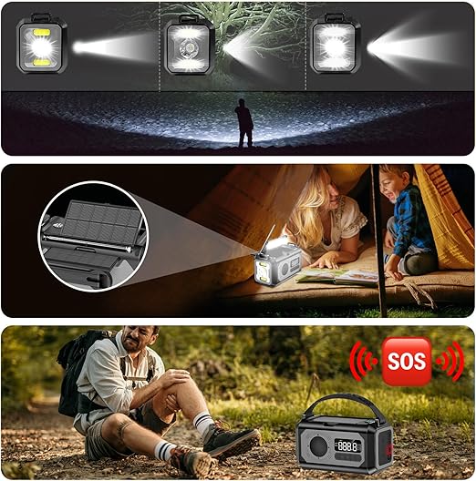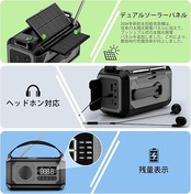 【3つの充電モードで、いつでもどこでも充電可能】 このラジオは、USB充電、ソーラー充電、手回し充電の3つの充電モードに対応しており、停電時や災害時など、あらゆる状況で充電が可能です。効率的なソーラーパネルを搭載しているの
