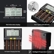 【日本語説明書は商品添付の案内をご確認ください。3A x 4スロットの高い充電電流設定が可能。放電機能なし】同価格帯では最高速レベルの3A超高速充電で、2000mAhバッテリーは1時間で充電完了。充電電流値が高いとパワーがより出ます。また、時間の節約にもうってつけです。4スロットそれぞれで別の設定で、かつ同時に充電が可能です。※大型バッテリーに対応するため、充電器のサイズも大きくなっておりますのでご注意ください。※工場および当ストアでは全商品を開梱検品しておりますが、まれに箱潰れ、指紋が残る場合