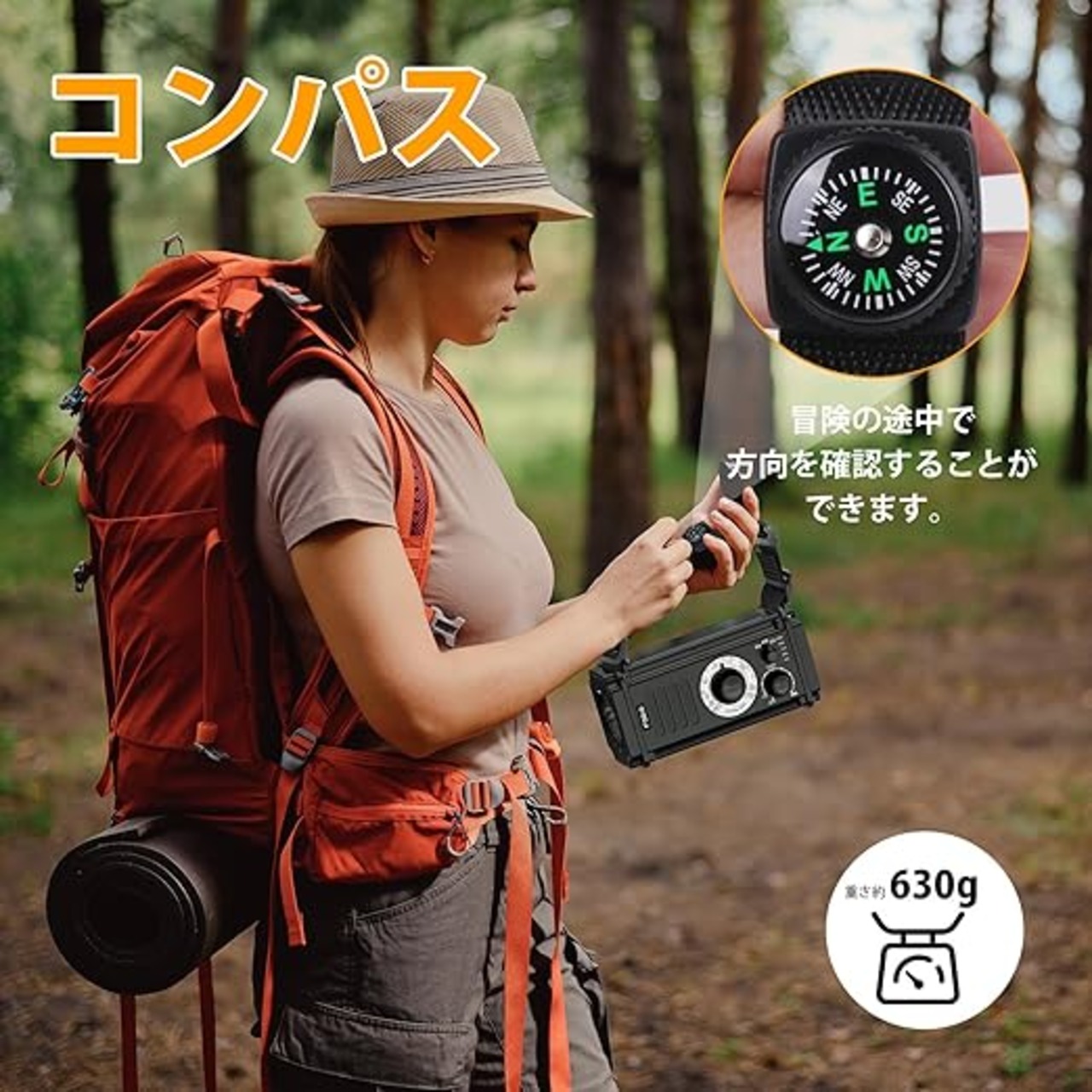 Shinmax 防災ラジオ 【20000mAh電池内蔵】 手回し 防災 多機能 AM/FM対応 SOSアラートコンパス 懐中電灯 読書灯 イヤホンジャック付き 非常用 防災用 アウトドア キャンプ USB充電式 ソーラー充電 手回し充電 防災グッズ 台風 地震 津波 停電などの緊急対策 日本語取扱説明書 a | PCBASE