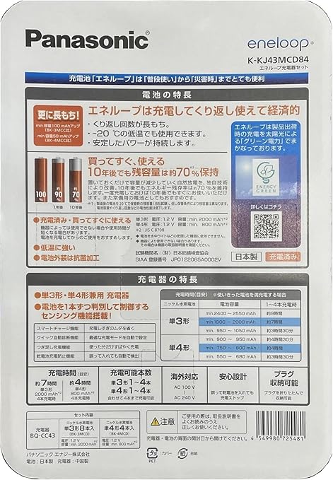 PANASONIC ENELOOP充電器セット単三8本+単四4本 K-KJ43MCD84 (2023年発売)