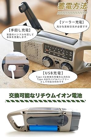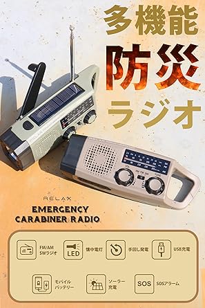 RELAX エマージェンシー カラビナ ラジオ 防災 多機能ラジオ 日本正規店 AM FM SW ポータブルラジオ モバイルバッテリー 手回し充電 ソーラー充電 USB充電 短波ラジオ SOSアラート 防災対策 電池交換可能 Type-C 充電 LEDライト 懐中電灯 日本語取扱説明書 保証書 付き (オリーブグリーン) a | PCBASE