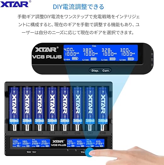 18650充電器 XTAR VC8 Plus リチウムイオン電池、単3/単4充電池充電器 急速充電3Ax2 / 2Ax4 / 1Ax4 / 1Ax8 /0.5Ax8/0.25Ax8 LCD付きバッテリー活性化機能 a | PCBASE