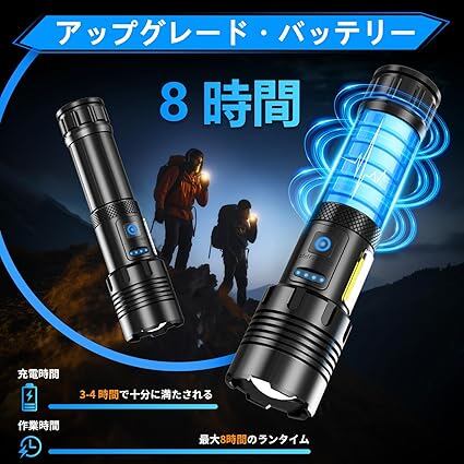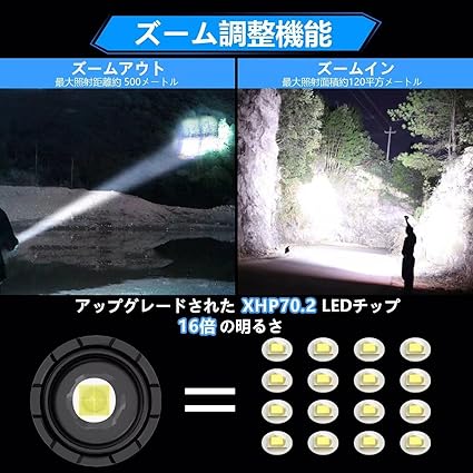 【超高輝度 30000ルーメン 懐中電灯 led 強力 軍用 最強】このフラッシュライトには、超明るXHP70.2 LEDチップが装備されており、驚くべき30,000ルーメンを提供しています。暗い荒野を歩いても、緊急事態に直面しても、このハンディライトは夜を昼に変える強烈で広範囲に届くビームを提供します。精密に設計されたLEDは、安定した鮮やかな光出力を保証し、最高の性能と信頼性を求める人に欠かせないツールとなっています。