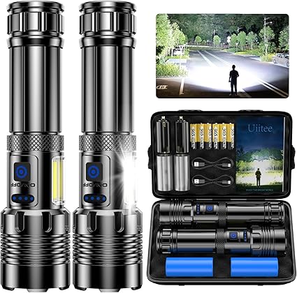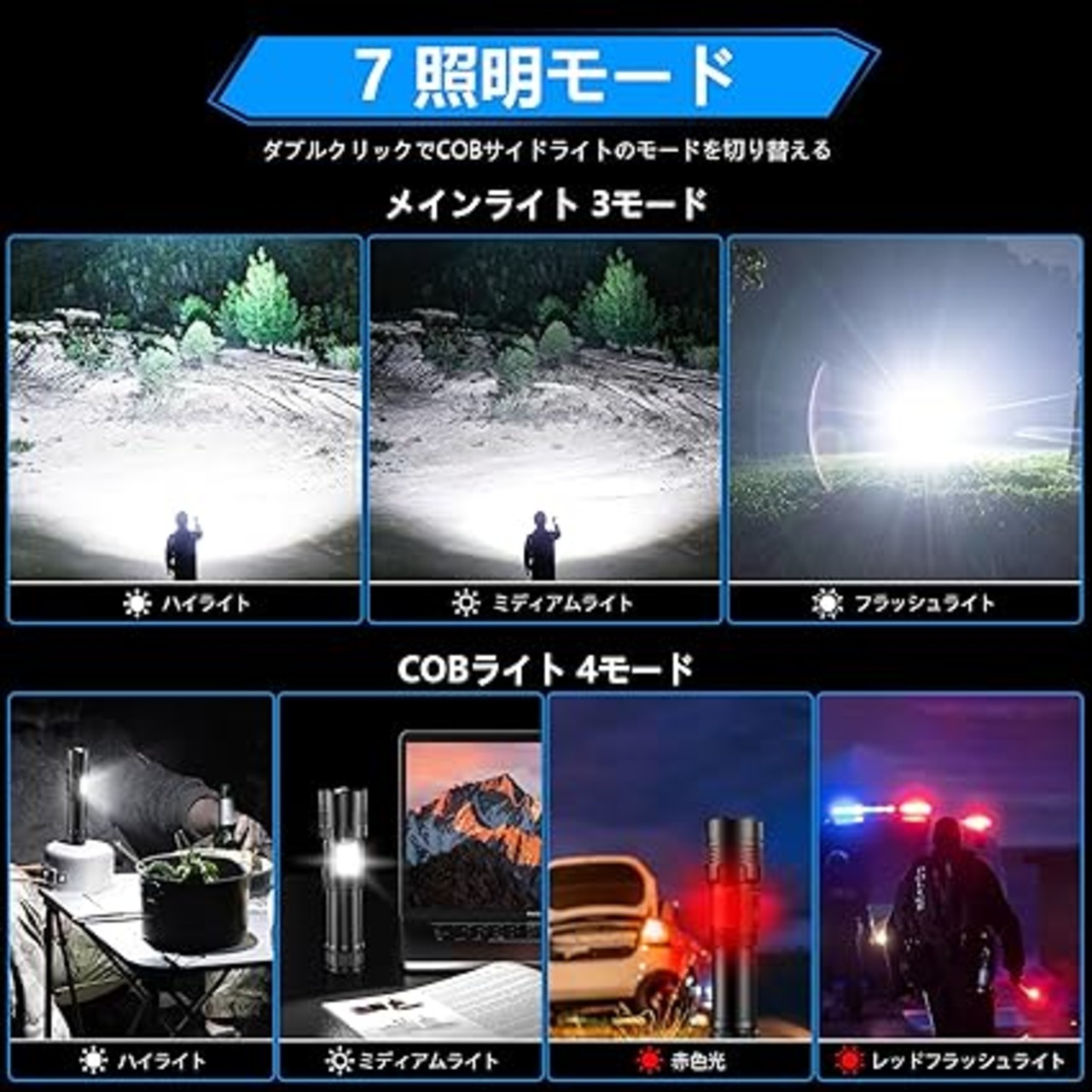 懐中電灯 フラッシュライト led 強力 軍用 最強 Uiitee 充電式 ハンディライト 30000ルーメン 超高輝度 XHP70.2 明るい flashlight ハンドライト 電池式 COB作業灯 IP67防水 7モード調光 ズーム調整可能 登山 夜釣り 夜間訓練 作業用 停電 防災 地震 避難対策 非常灯にも使用可能(2個パック) a | PCBASE
