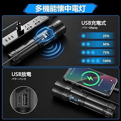 【懐中電灯 充電式|USB出力|パワーインジケーター】この電池式 懐中電