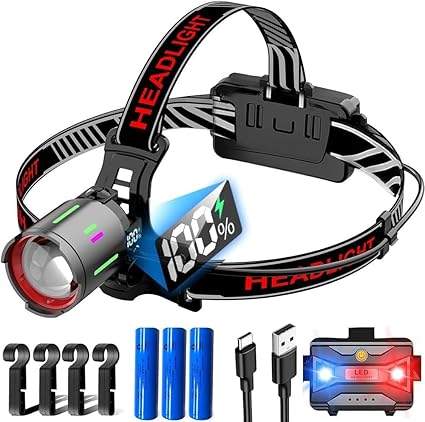 【液晶デジタル電力表示カラー夜光】ヘッドライト 強力 超高輝度 3000000ルーメン 明るい USB充電式 led 6つの照明モード センサー機能 釣り ヘッドランプ ヘルメットライト ズーム調節 120°角度調節 ヘルメット用 Type-C 電池式 へっどらいと 長時間 大容量 頭につける ライト 防水 防災 アウトドア用 ヘッドランプ キャンプ 夜釣り 登山 工事用 作業用 最適 a | PCBASE