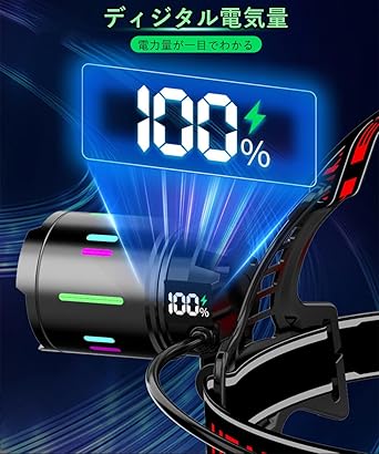 【超精確液晶デジタル電力表示カラー夜光ヘッドランプ】 超精確な液晶デジタル電力表示機能を搭載しており、直感的なデジタル表示により、ヘッドランプの残電力をいつでも把握できるため、電力不足を心配する必要はありません。アウトドア探検、夜間の歩行、非常照明など、より安心して外出することができ、利便性も高いです。頭部にアップグレードカラー夜光バーを搭載、ヘッドランプにより多くの美しい色を加え、夜間の視覚効果を豊かにする。ヘッドランプの上部に透過処理を追加し、頭部を伸ばした後、夜光バーは1秒で強い光を吸収し