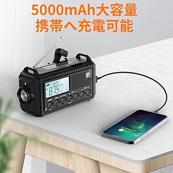 Mesqool 防災ラジオ ソーラー多機能ラジオ 手回し 懐中電灯 読書ランプ付 SW/AM/FMラジオ (FM76.00Mhz - 108MHz) SOSアラート付き小型ラジオ スマホに充電可能な防災ライト 屋外で使えるポータブルラジオ 手回し充電 ソーラー充電 乾電池 USB充電 地震 震災 津波 台風などの緊急対策 アウトドア 防災グッズ a | PCBASE